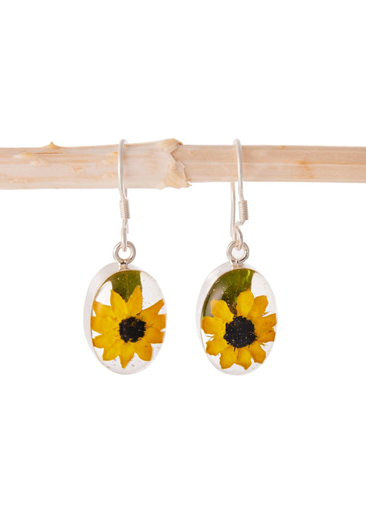 Oval Earrings with Real Sunflower