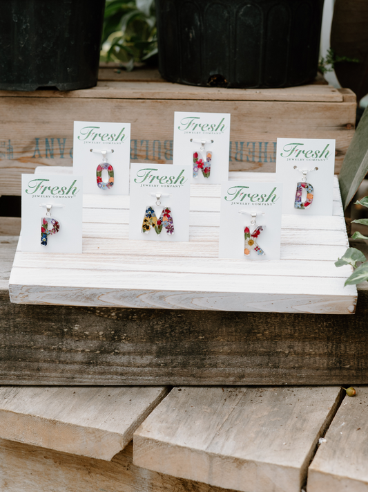 Initial Pendant A-Z with Mixed Flowers