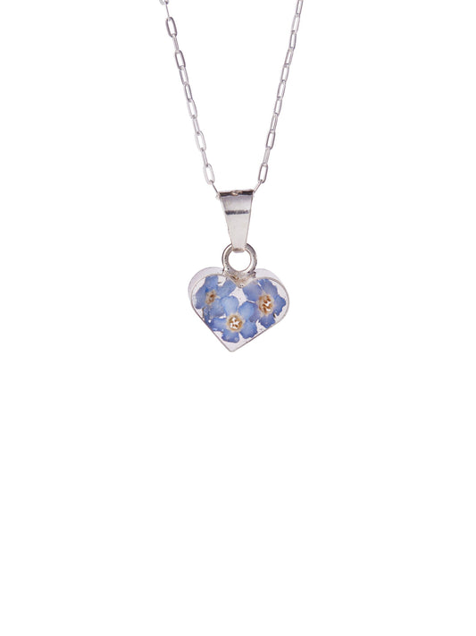 Tiny Heart Pendant with Forget Me Nots