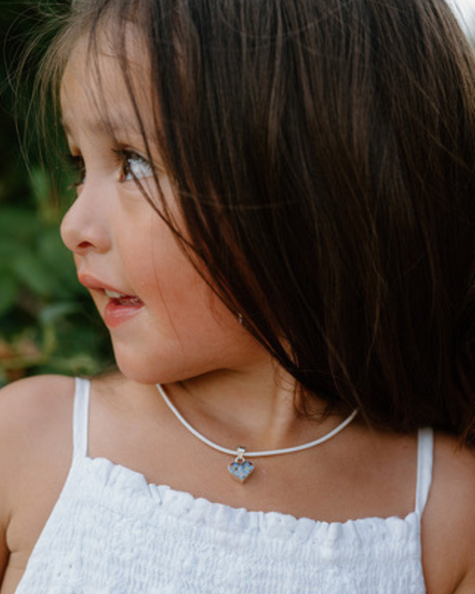 Tiny Sterling Silver Heart Pendant with Forget Me Nots