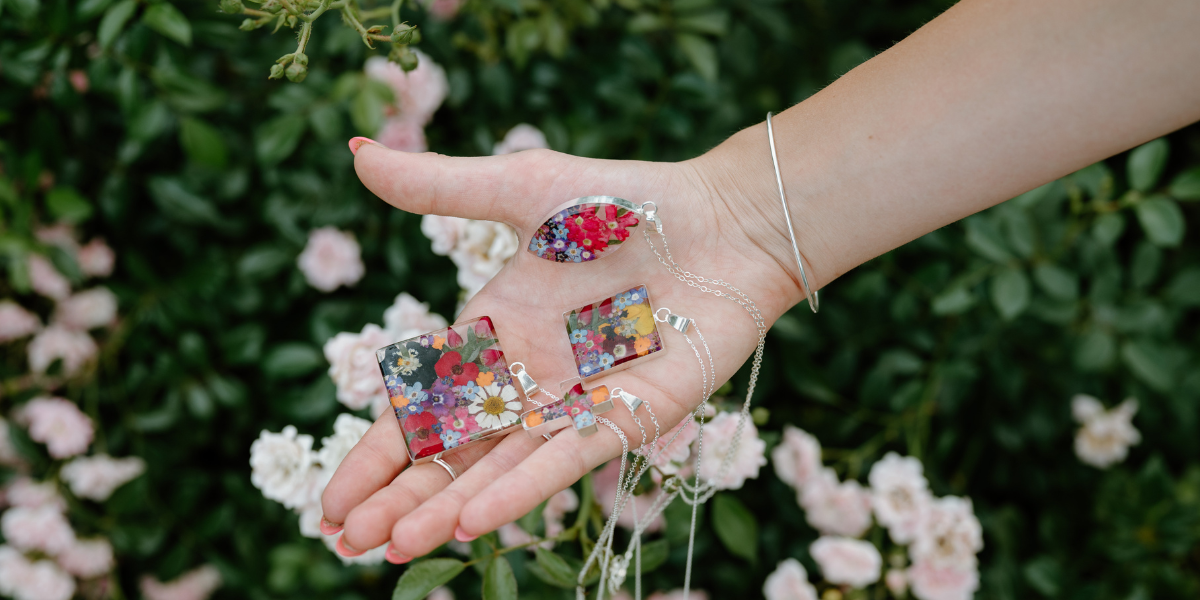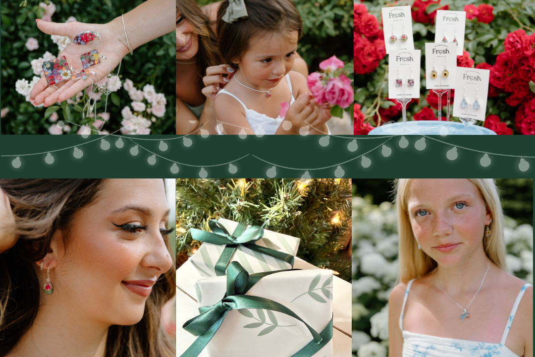 Jenny here - founder of Fresh Jewelry Co. Fresh was created to bring joy, spread beauty and make everyone wearing one of our pieces smile, by wearing their favorite real blooms. I mean, why not wear the beauty of flowers all day long?