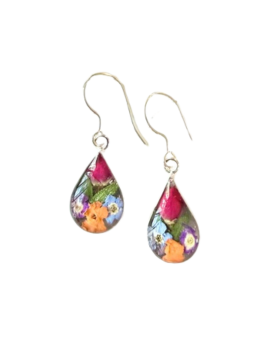 Teardrop Earrings with Orange Mixed Flowers with Rosebud