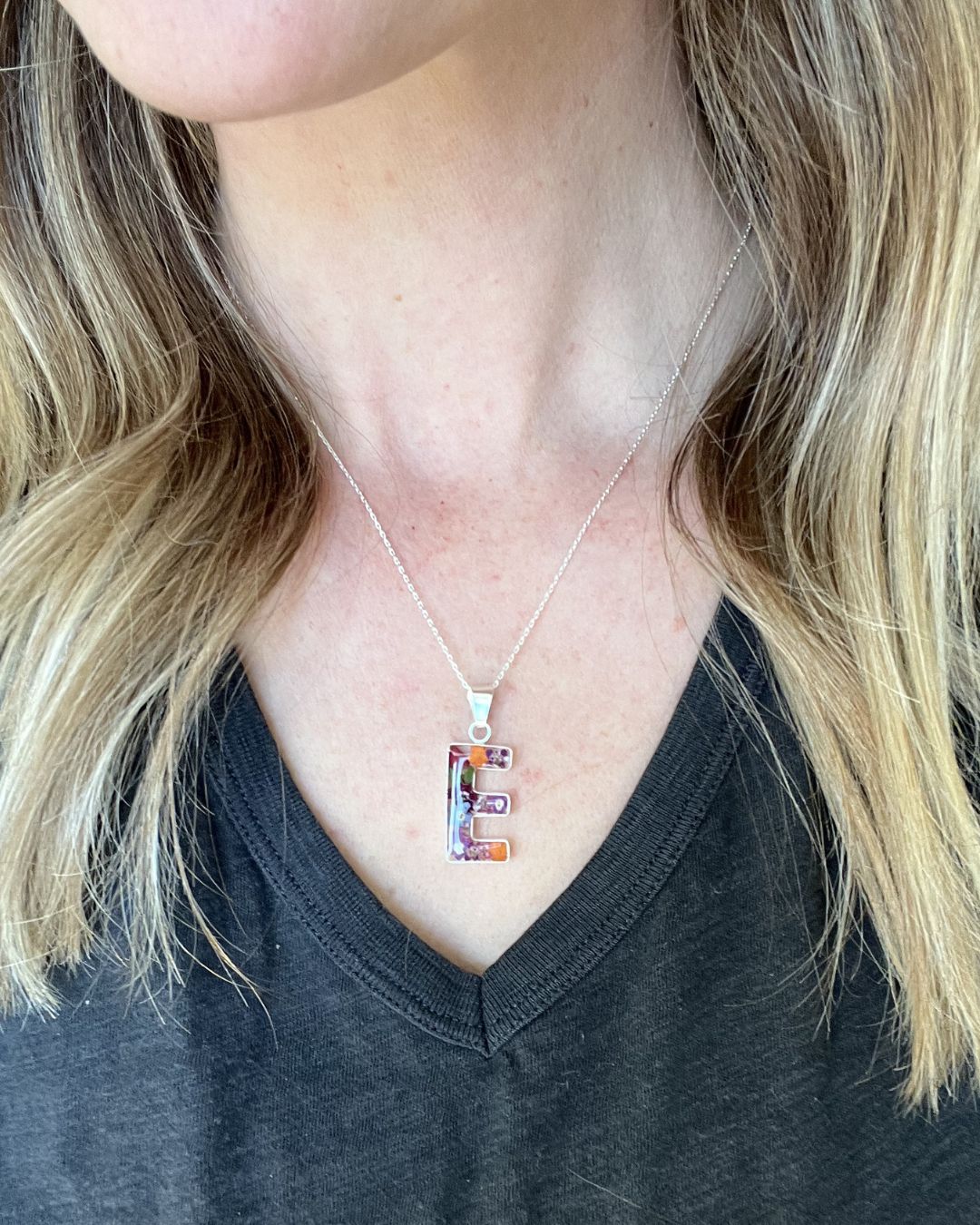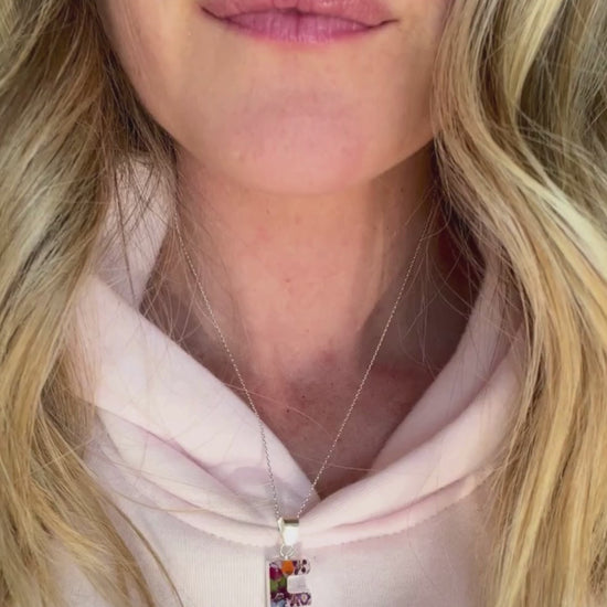 Celebrate personalization and the beauty of nature with this handcrafted sterling silver personalized initial necklace, featuring real mixed flowers delicately preserved in crystal-clear resin. Each initial, from A to Z, measures approximately 1 3/8” in total length and is individually handmade, making every piece one of a kind. Choose your favorite letter to create a meaningful, nature-inspired accessory. Add the optional 18” sterling silver chain to wear it as a necklace, or enjoy it as a versatile stackable charm.