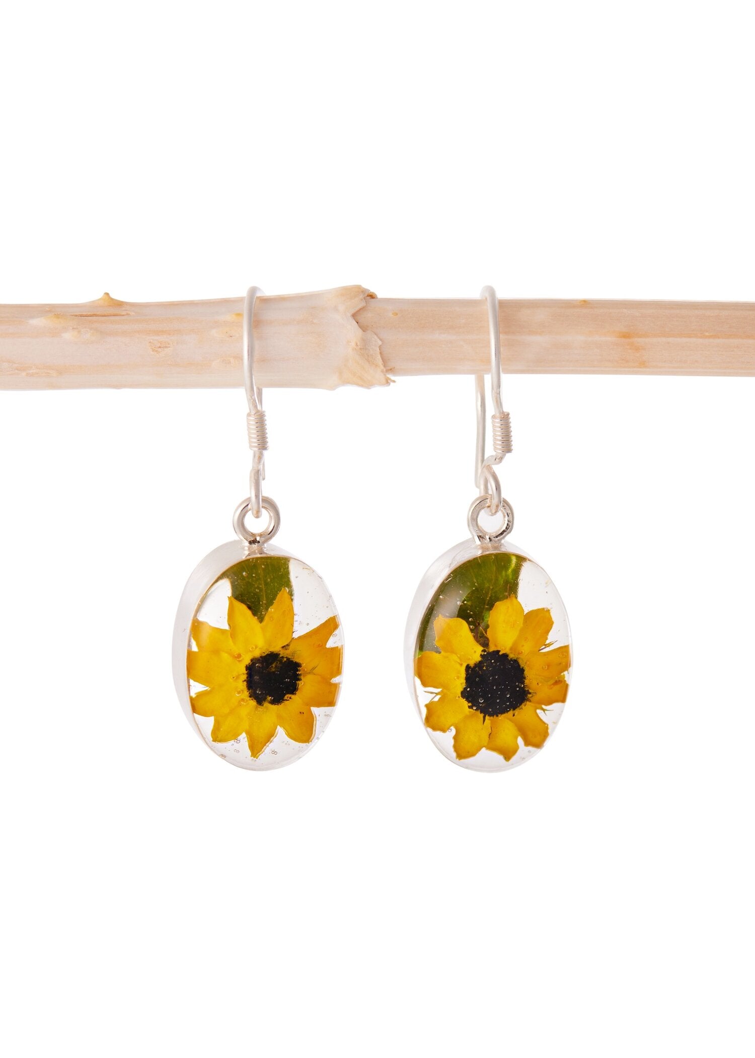 Brighten your day with the bold beauty of these oval-shaped sterling silver earrings, featuring real sunflowers preserved in resin. Handmade with care, each pair captures a burst of sunshine—“always fresh, never pressed”—preserved at the peak of bloom to showcase its radiant color and intricate detail. With a graceful oval silhouette and timeless design, these earrings are a wearable piece of nature that’s as meaningful as it is beautiful.